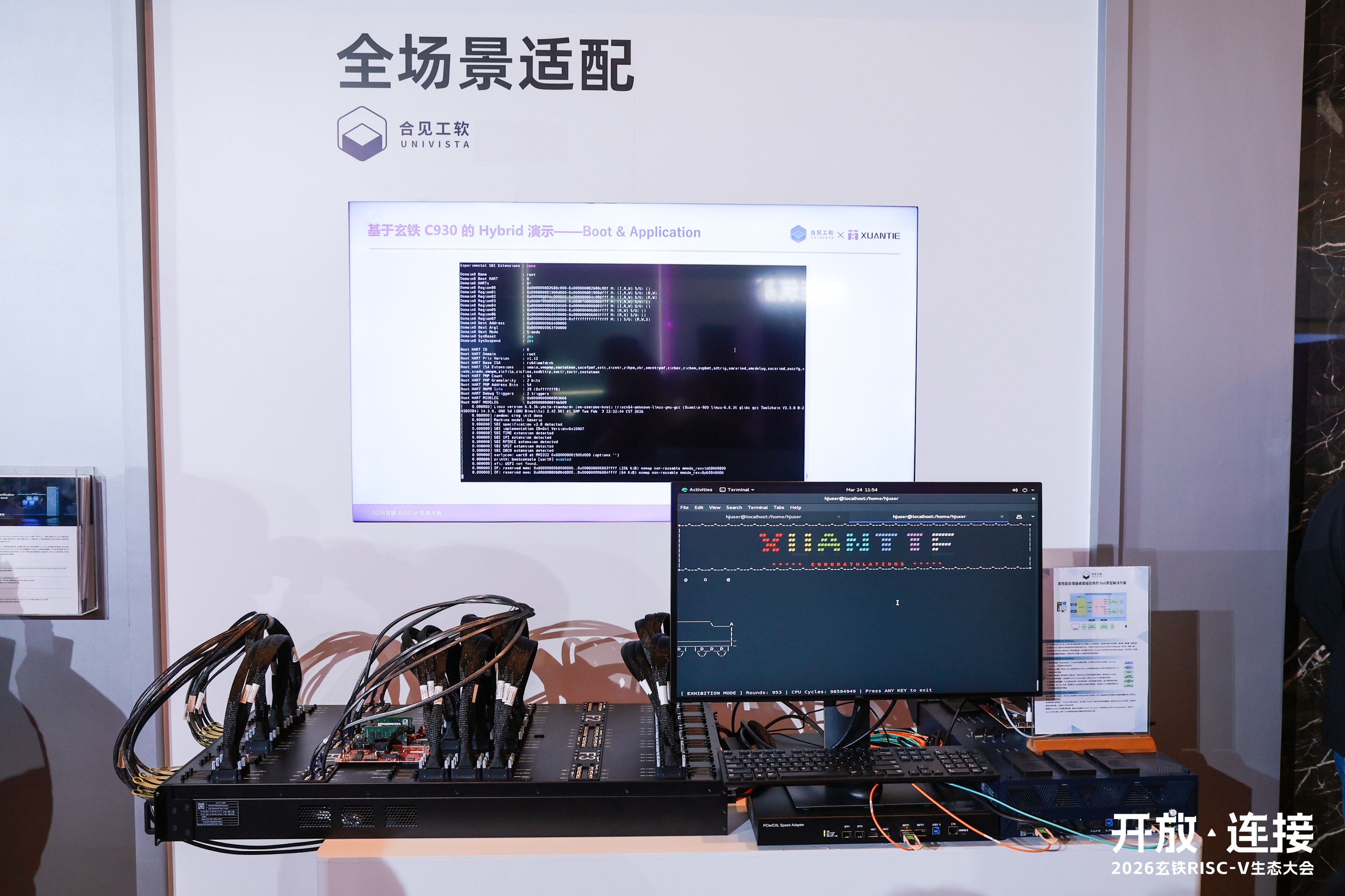 2026年3月24日——2026“开放・连接” 玄铁RISC-V生态大会在上海盛大启幕,中国数字 EDA/IP 龙头企业上海合见工业软件集团股份有限公司(简称 “合见工软”)作为核心合作伙伴重磅出席,与达摩院玄铁联合发布两大技术成果:基于玄铁定制QEMU与合见工软全场景验证硬件系统UniVista Unified Verification Hardware System Gen2(UVHS-2)的混合仿真方案“QEMU+UVHS-2 Hybrid Emulation”,以及基于合见工软单系统先进原型验证平台PHINE DESIGN Advanced Solo Prototyping(简称“PD-AS”)的高性能处理器桌面级Fast原型方案。两大联合方案均完成与玄铁C930高性能处理器的深度适配与验证,并与玄铁最新型号处理器产品深度合作,从原型验证到硬件仿真到混合仿真,实现RISC-V SoC全流程验证效率的跨越式提升,为RISC-V在智算时代的产业化落地注入硬核EDA技术力量。